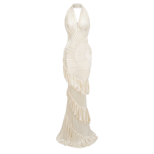 Vilhelmiina Cream White Halterneck Shirred Maxi Dress