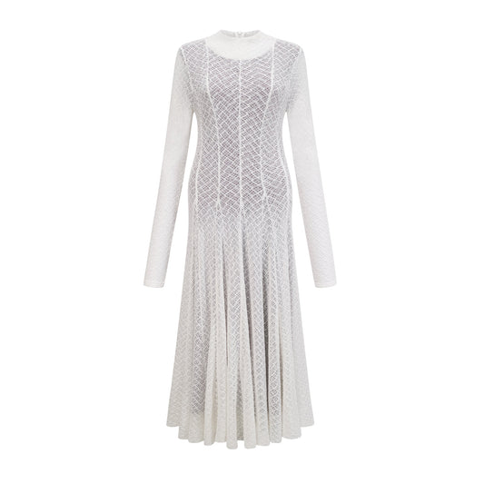 Blanche White Embellished Pleated Two-Piece Jacket and Dress Set