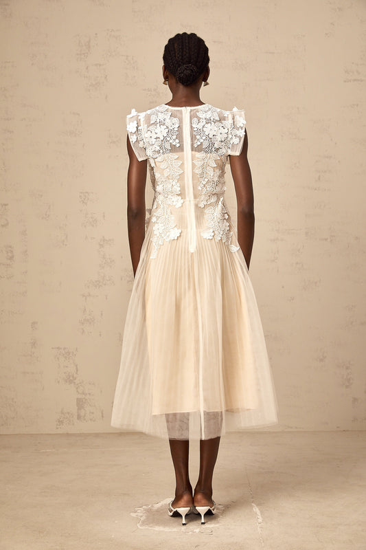 Aurore Blue Floral Appliqué Lace Midi Dress