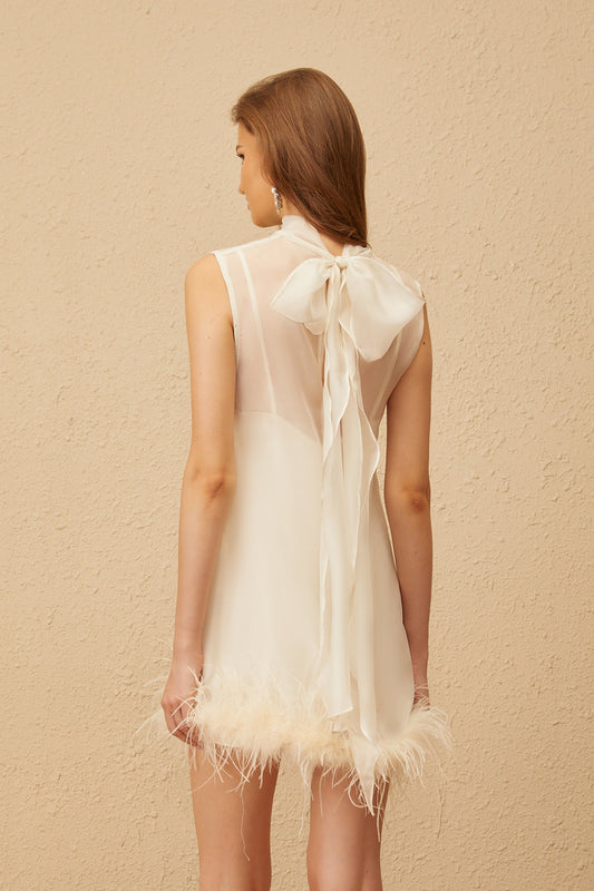 Aria White Asymmetrical Shawl & Tulle Panel Dress Set