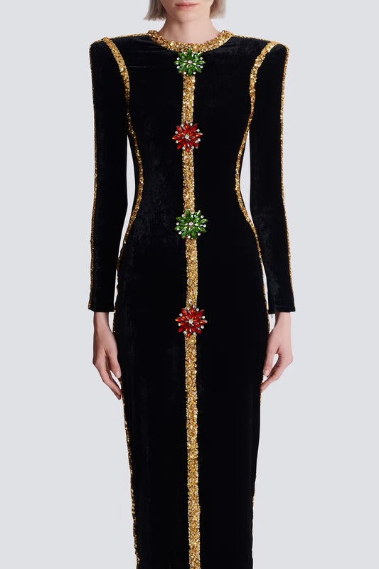 Anna Black Crystal Embellished Front Slit Maxi Dress