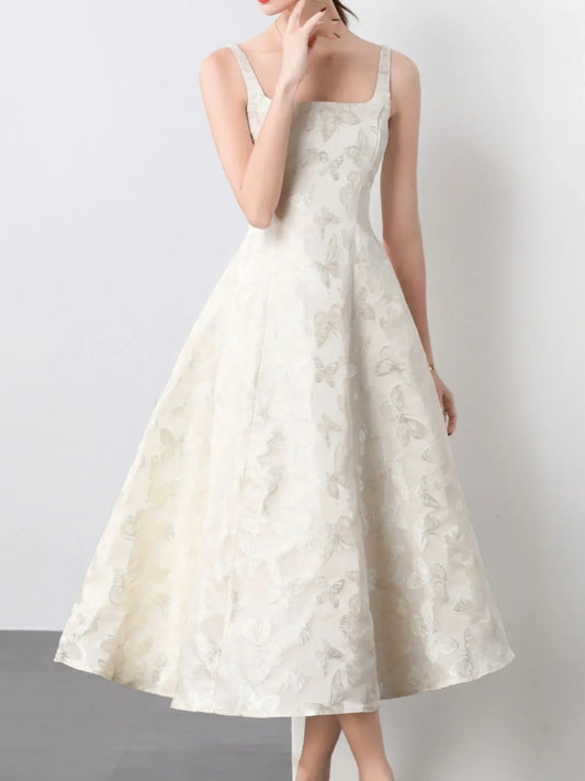Butterfly Pattern A-Line Sleeveless Midi Dress