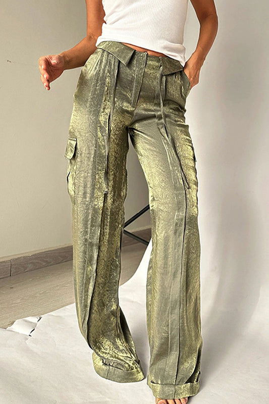 Casual Gradual Change Pocket Loose Mid Waist Straight Bottoms