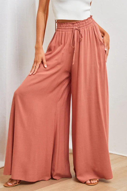 Elegant Solid Pocket Frenulum Loose High Waist Wide Leg Solid Color Bottoms