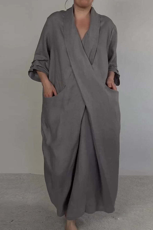 Casual Pocket Slit V Neck Long Dresses(7 Colors)