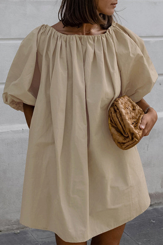 Sexy Solid Color Pocket Ruched Off Shoulder Lantern Skirt Dresses