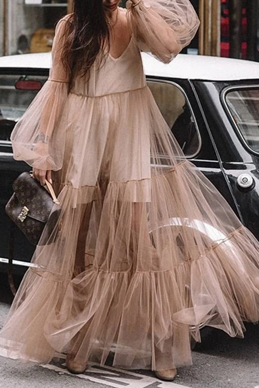 Casual Solid Mesh V Neck Mesh Dress Dresses(3 Colors)