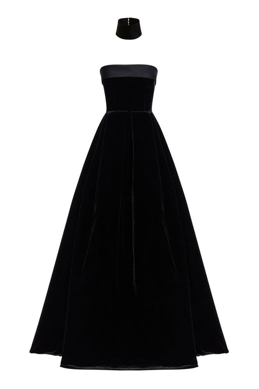 Regal Choker Fold Over Strapless Fit & Flare Velvet Evening Maxi Dress