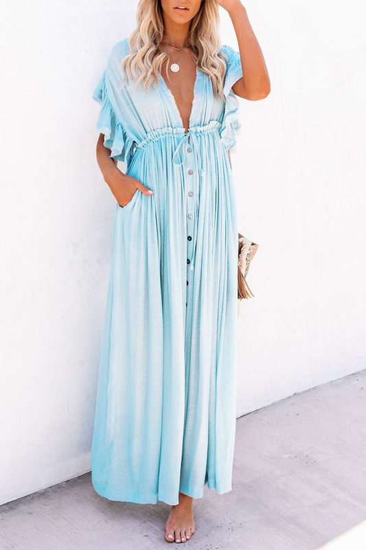 Sweet Elegant Solid V Neck A Line Short Sleeve Dress
