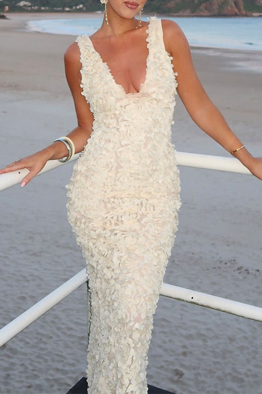 Sexy Solid Color Flower Shape V Neck One Step Skirt Dresses