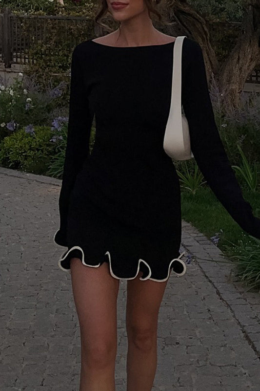 Casual Daily Solid Color Stringy Selvedge O Neck Long Sleeve Dresses(3 Colors)