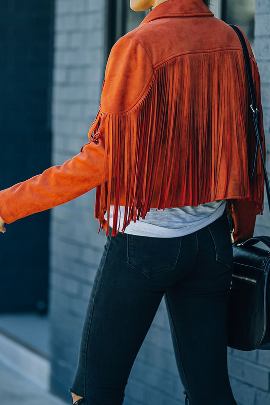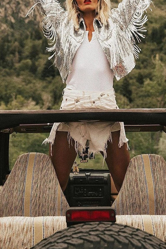 Casual Street Solid Tassel Sequins Patchwork Turndown Collar Outerwear