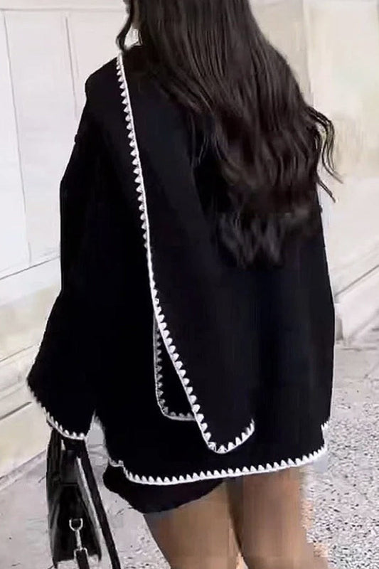 Fashion Street Solid Tassel Patchwork Turndown Collar Outerwear