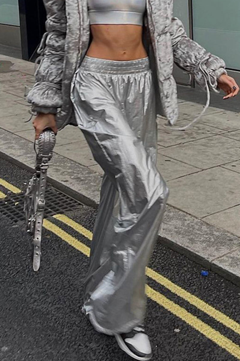 Casual Street Solid Loose High Waist Wide Leg Solid Color Bottoms