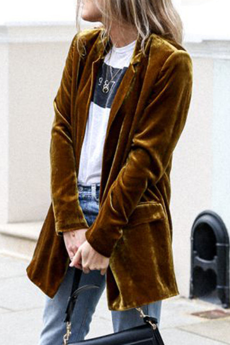 Elegant Solid Pocket Turndown Collar Outerwear(4 Colors)
