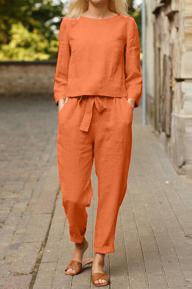 Fashion Vintage Solid Patchwork O Neck Long Sleeve Two Pieces(4 Colors)